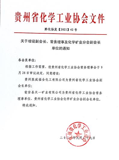 关于增设副会长、常务理事及化学矿业分会副会长单位的通知