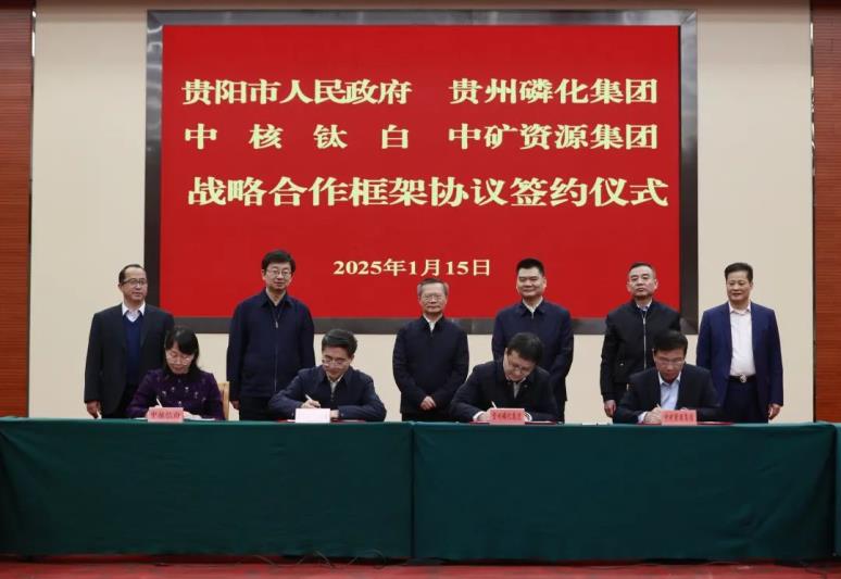 近日,贵阳市与贵州磷化(集团)有限责任公司、中核华原钛白股份有限公司、中矿资源集团股份有限公司战略合作框架协议签约仪式举行。省委常委、市委书记胡忠雄出席并讲话。