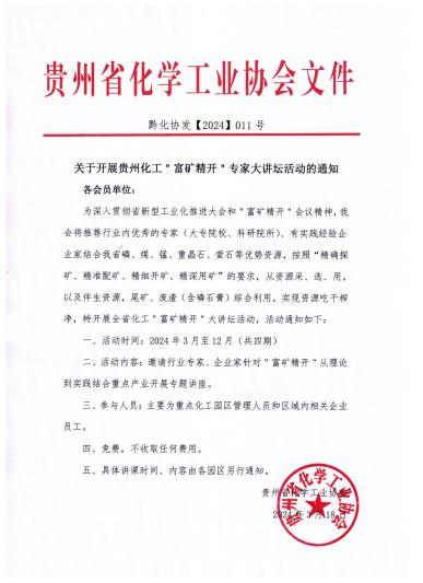 关于开展贵州化工"富矿精开"专家大讲坛活动的通知