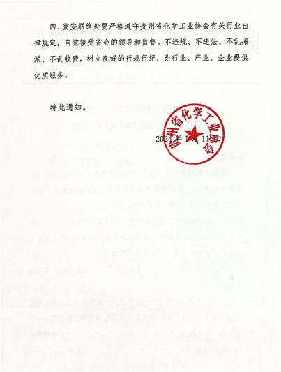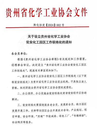 关于设立贵州省化学工业协会瓮安化工园区工作联络处的通知