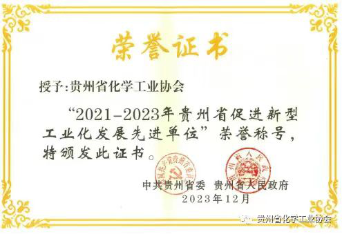 贵州省化学工业协会:荣获2021-2023年贵州省促进新型工业化发展先进单位荣誉称号