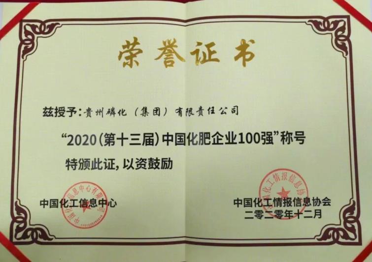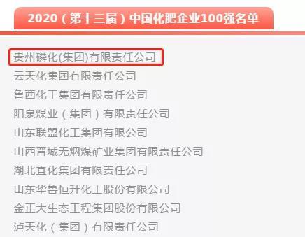 【磷化动态】榜首!贵州磷化位居2020中国化肥企业100强第一位